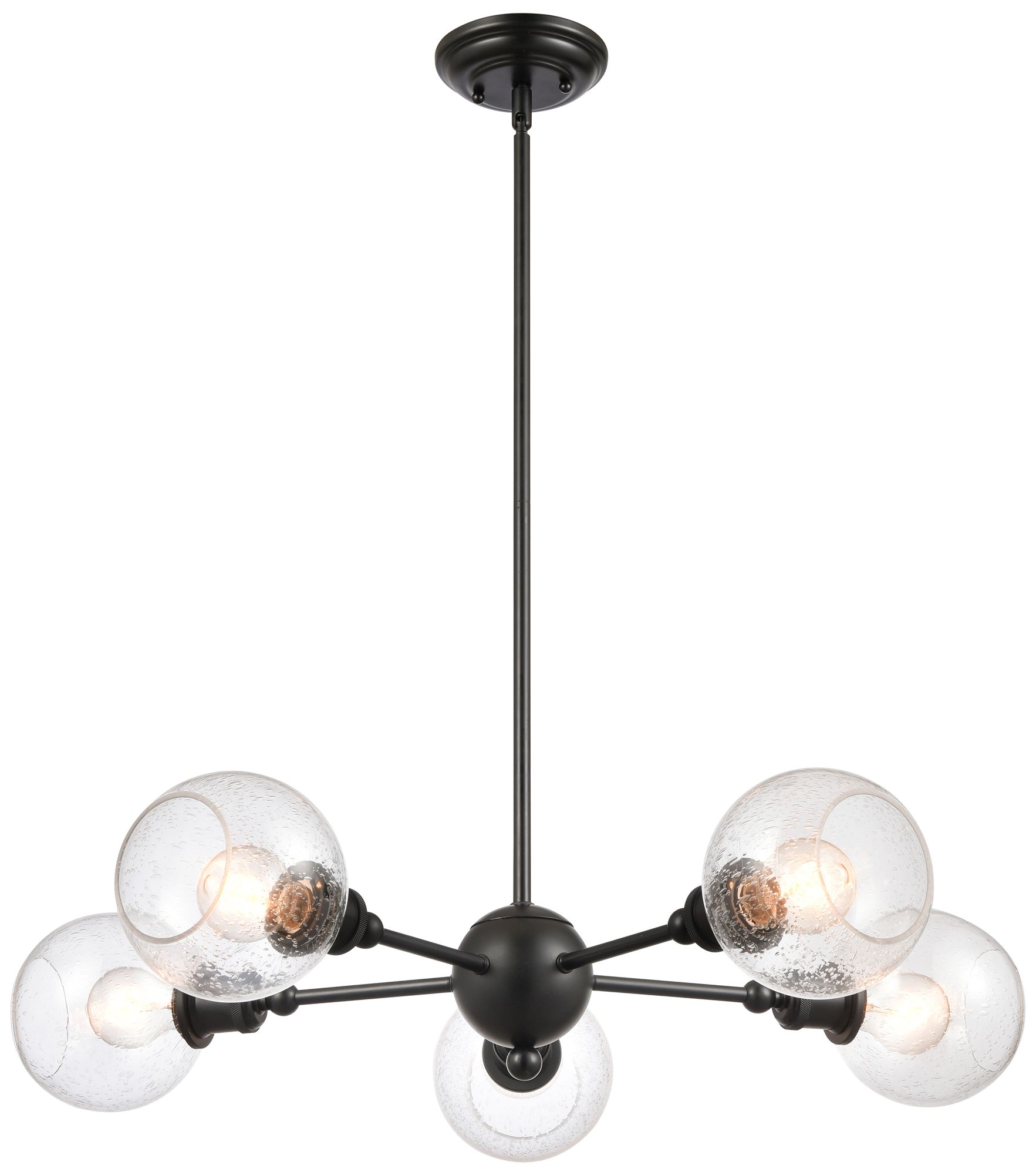 Concord 30" 5-Light Matte Black Stem Hung Chandelier w/ Seedy Shade