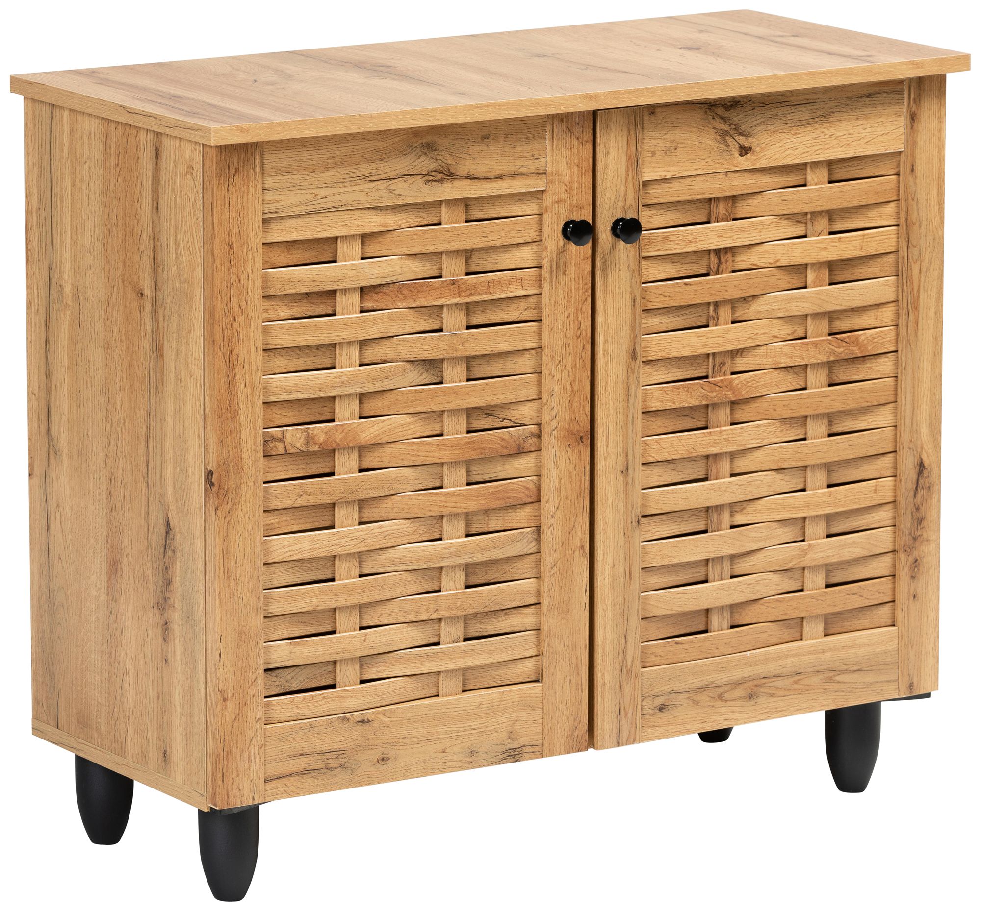 Baxton Studio Winda 30" Wide Oak Brown 2-Door Shoe Cabinet