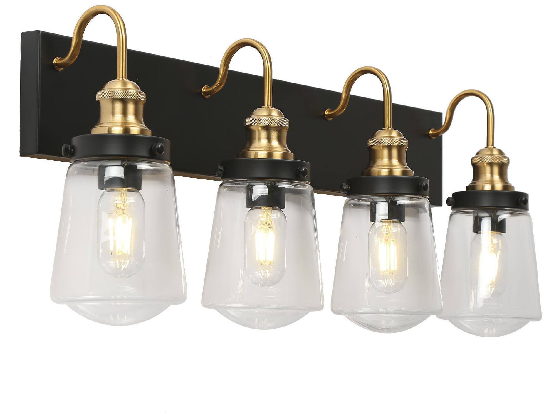 4-Lights 31.5"W Black and Plated Copper Wall Lamp