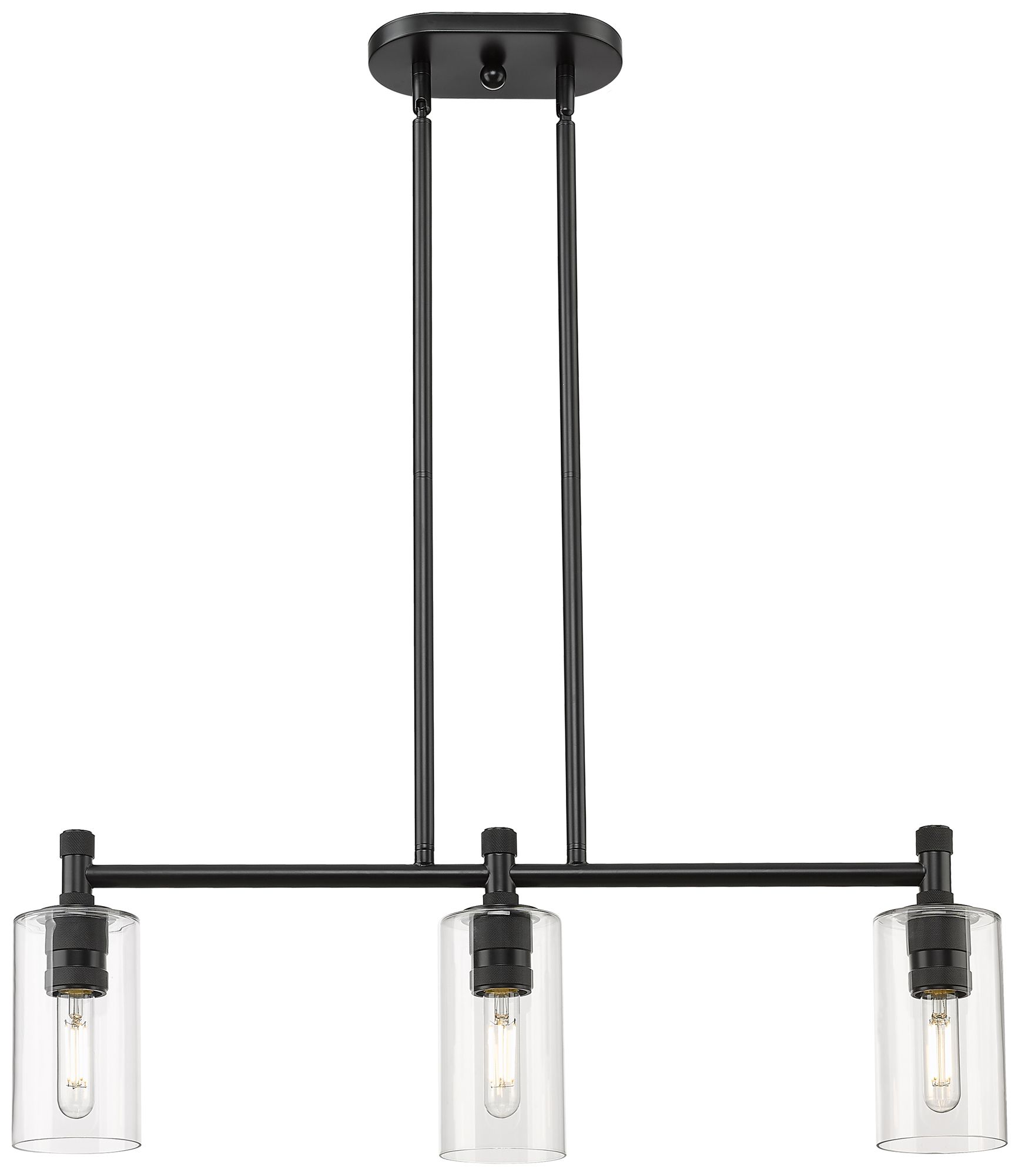 Crown Point 30.5"W 3 Light Matte Black Stem Island Light w/ Clear Shad