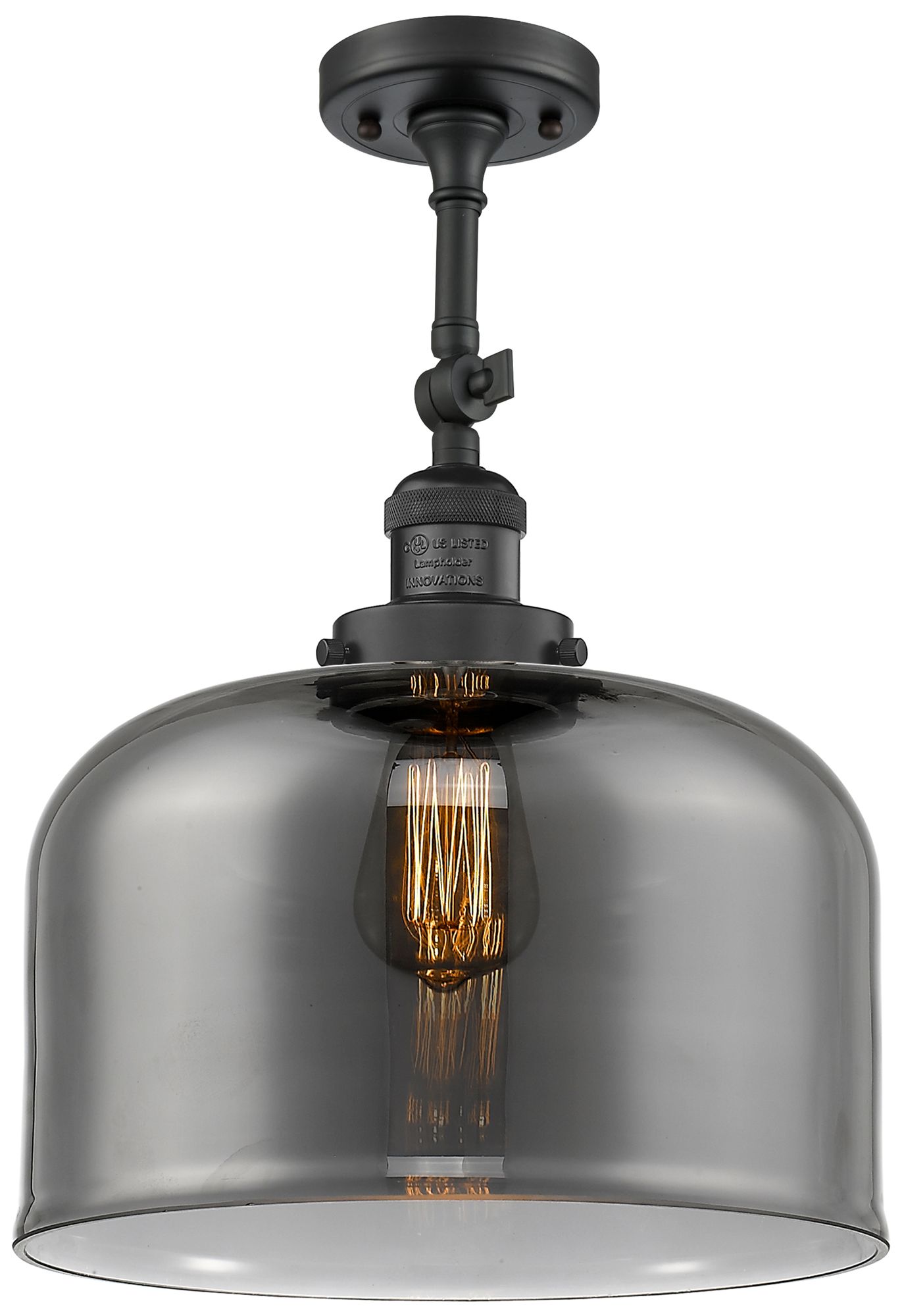 Franklin Restoration Bell 12" Matte Black Semi Flush Mount w/ Smoke Sh