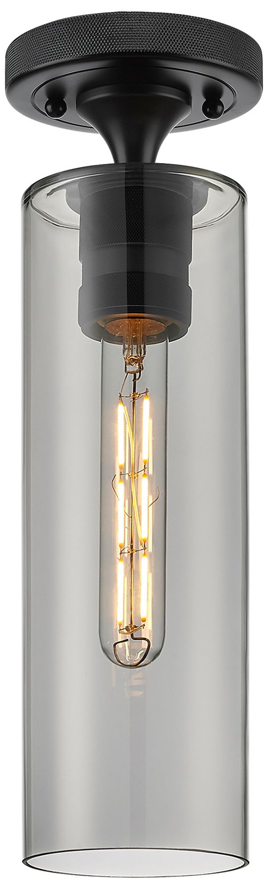 Crown Point 3.88" Wide Matte Black Flush Mount With Plated Smoke Shade
