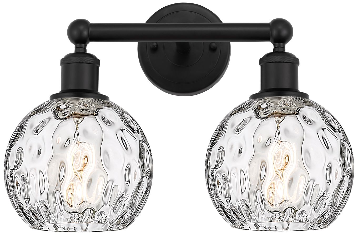 Athens 15" 2-Light Matte Black Bath Light w/ Clear Water Glass Shade