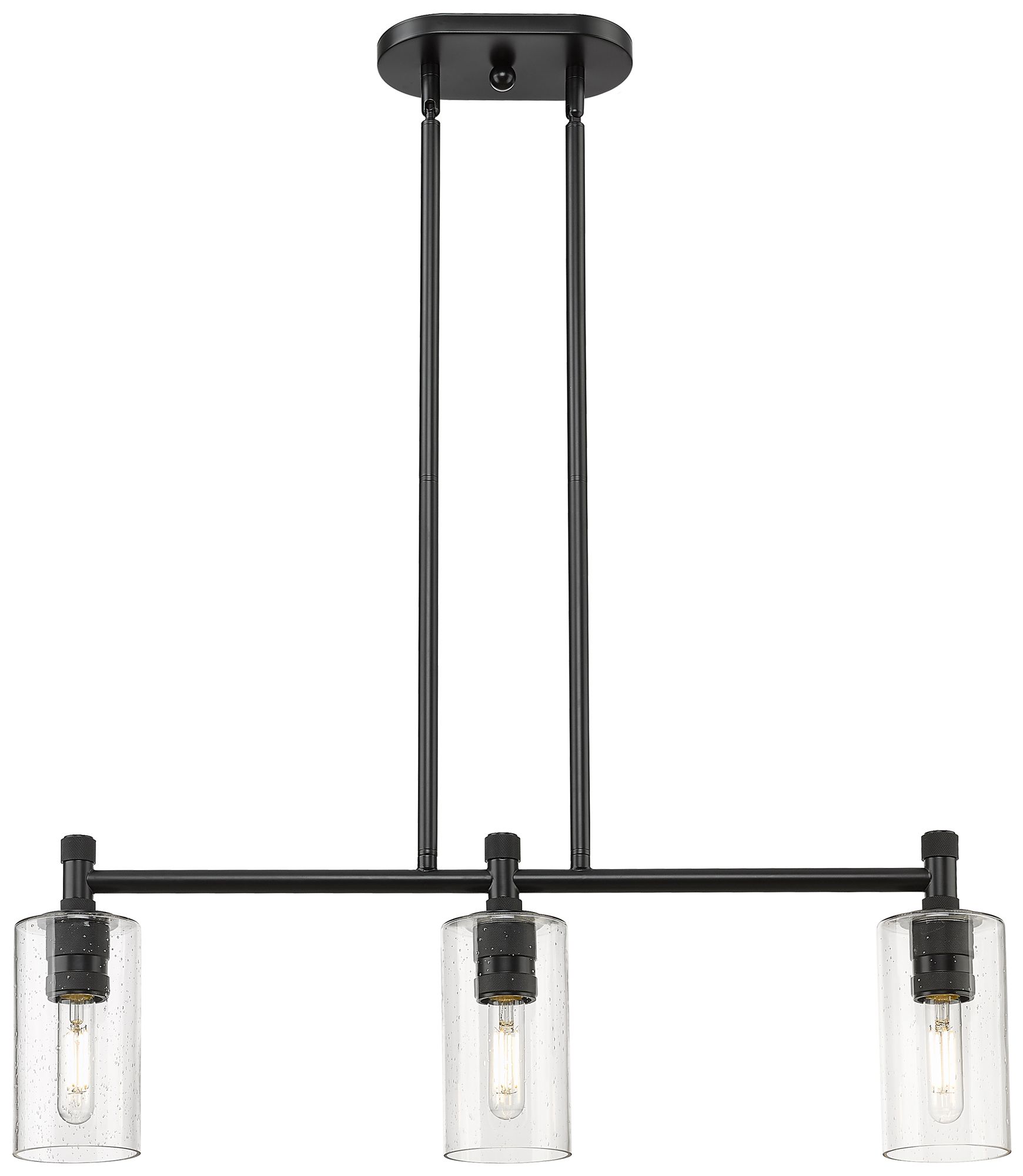 Crown Point 30.5"W 3 Light Matte Black Stem Island Light w/ Seedy Shad