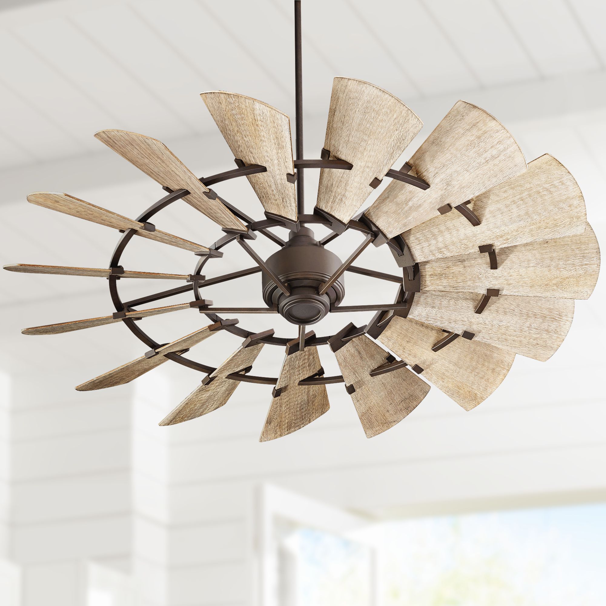 60" Quorum Windmill Oiled Bronze Damp Rated Fan with Wall Control