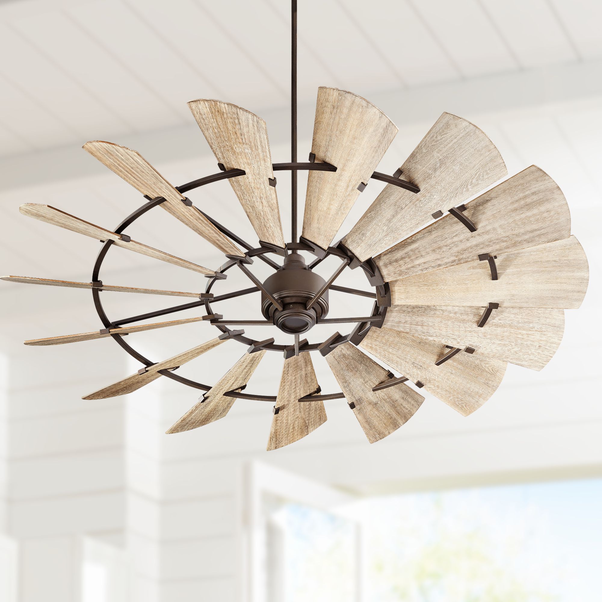 72" Quorum Windmill Bronze Rustic Damp Rated Ceiling Fan with Remote