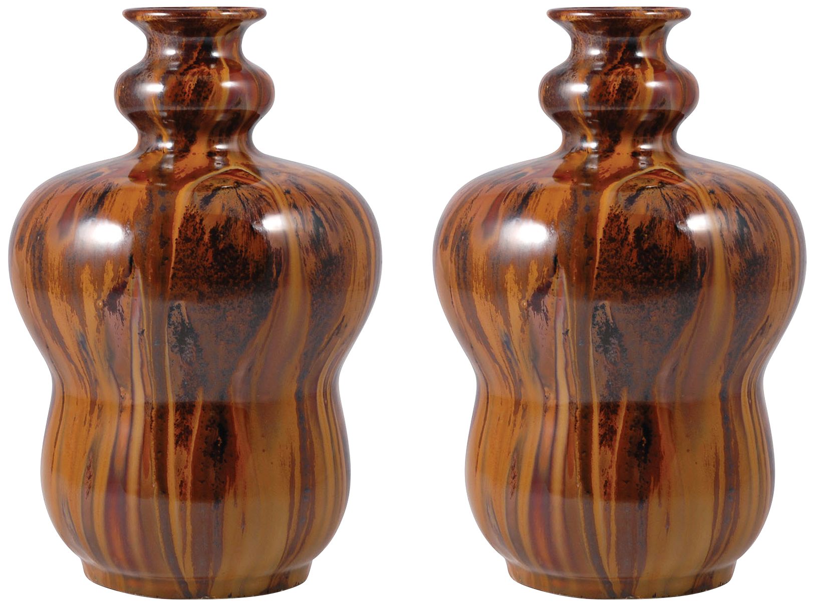 Montana 10" High Wood Grain Ceramic Vases - Set of 2