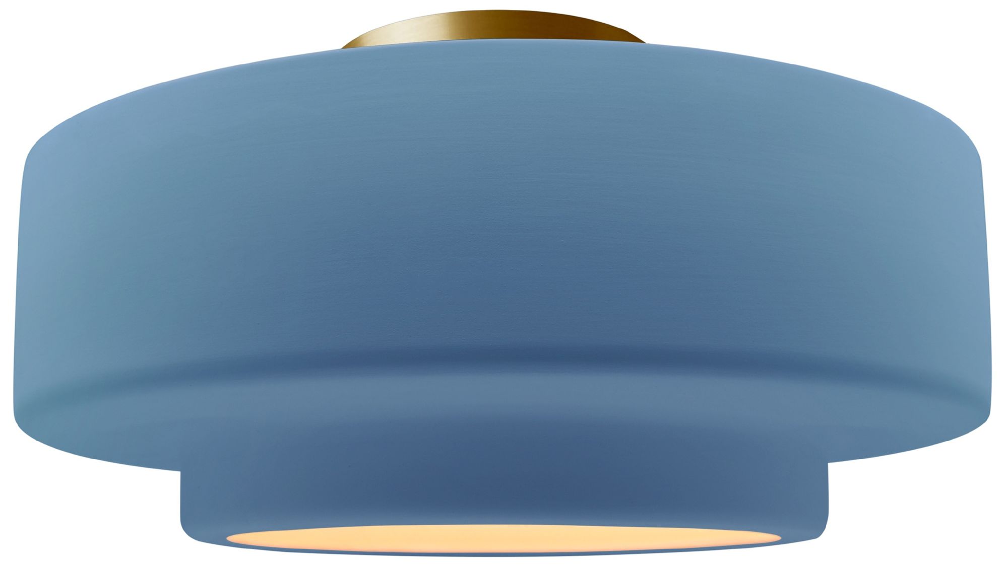 Radiance 16.5"W Sky Blue Frame Brushed Brass Large Tier LED Semi.Flush