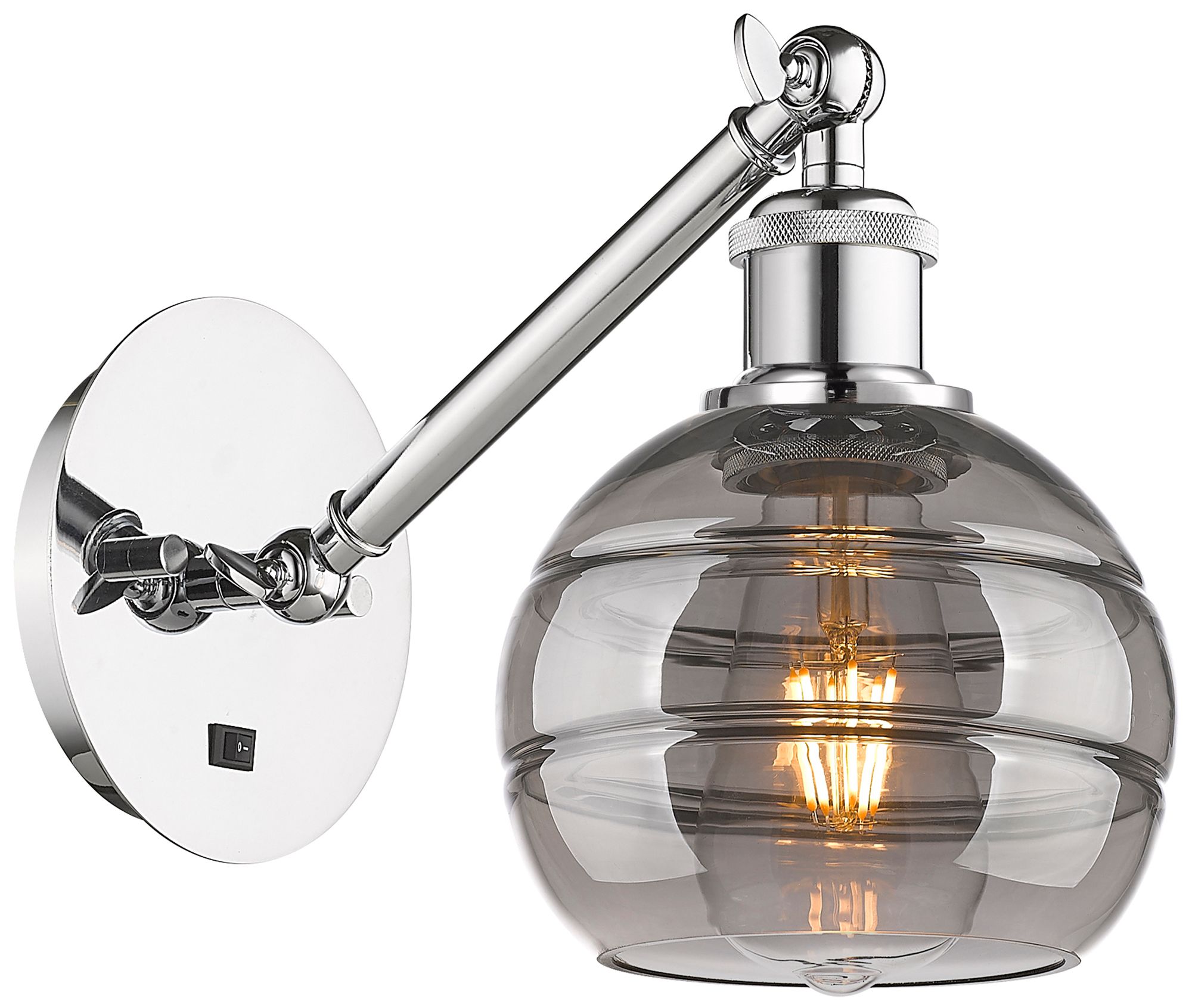 Ballston Rochester 7.88"H Chrome Adjustable Sconce w/ Smoke Shade