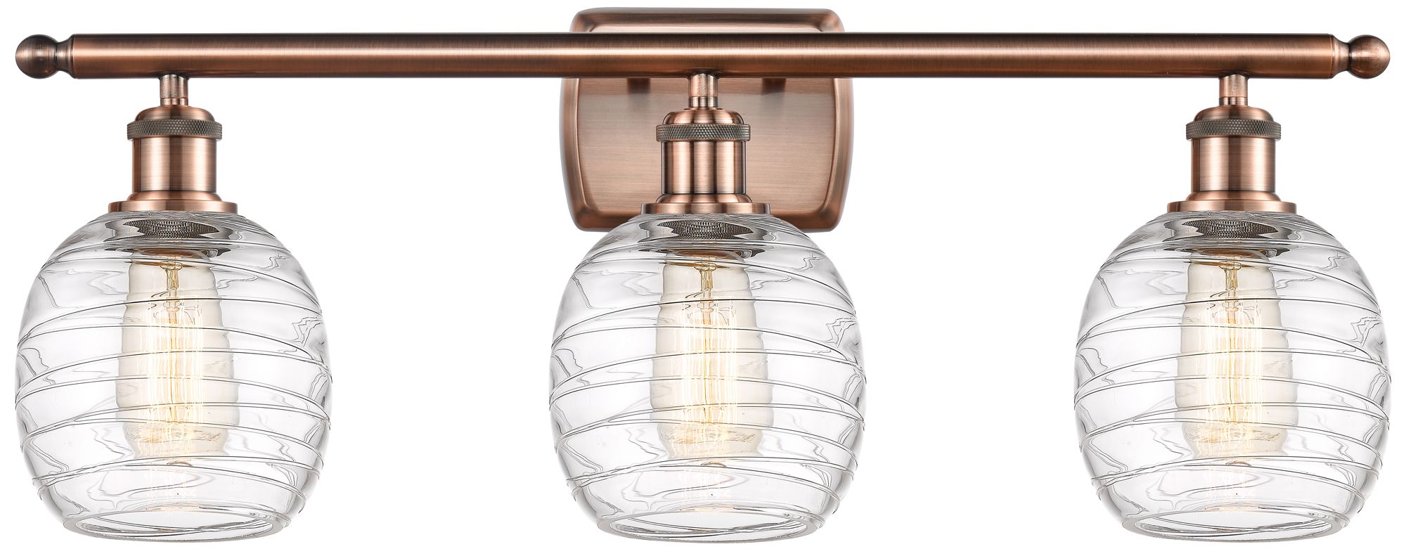 Belfast 3 Light 26" LED Bath Light - Antique Copper - Deco Swirl Shade