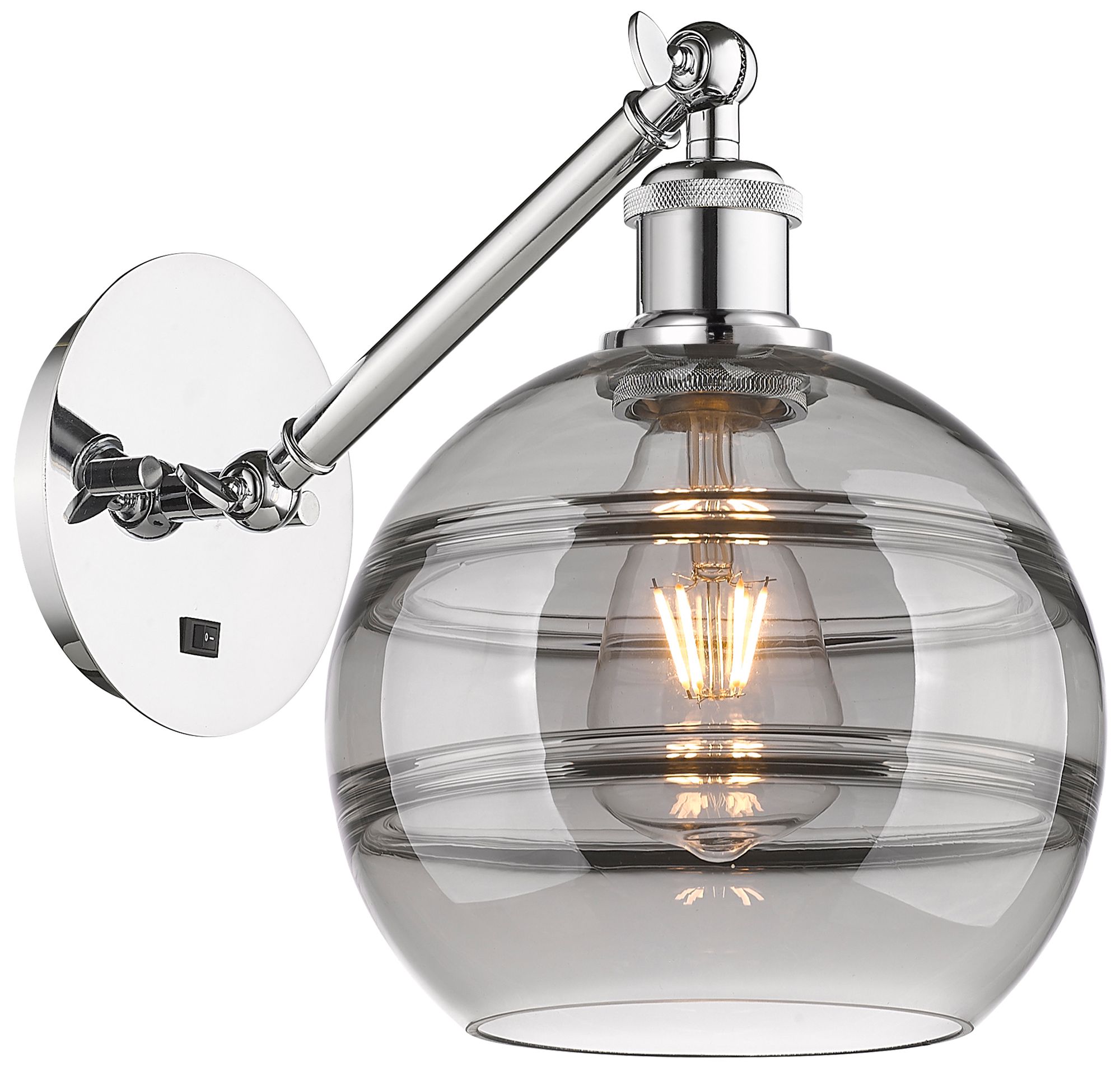 Ballston Rochester 9.88"H Chrome Adjustable Sconce w/ Smoke Shade