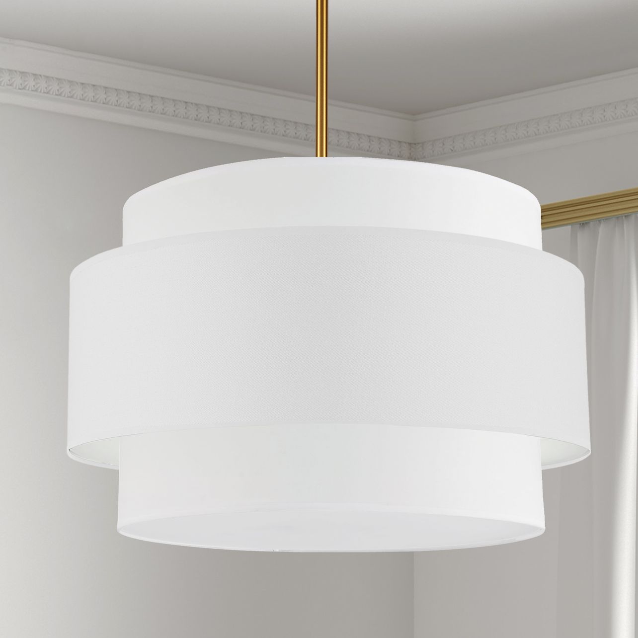 Priya 22"W Aged Brass Pendant Light with White Fabric Shade