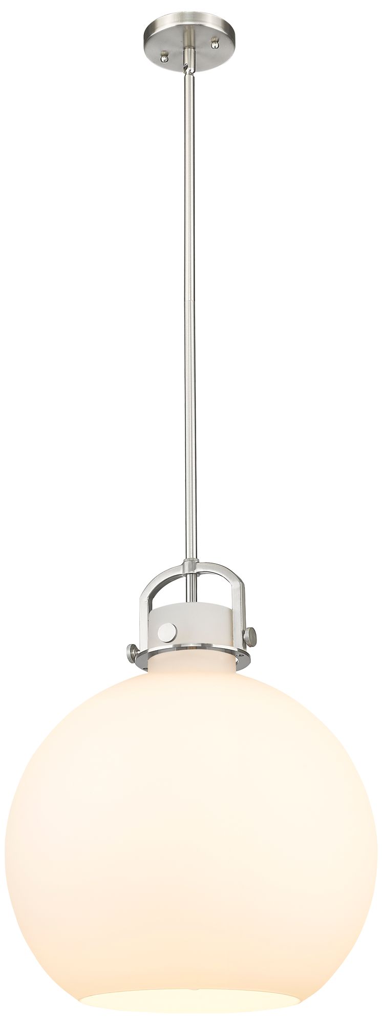Newton Sphere 16" Wide Stem Hung Satin Nickel Pendant With White Shade