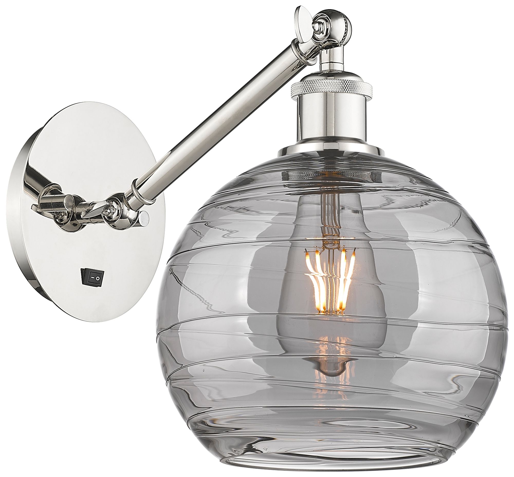 Athens 9.88"H Polished Nickel Adjustable Sconce w/ Smoke Swirl Shade