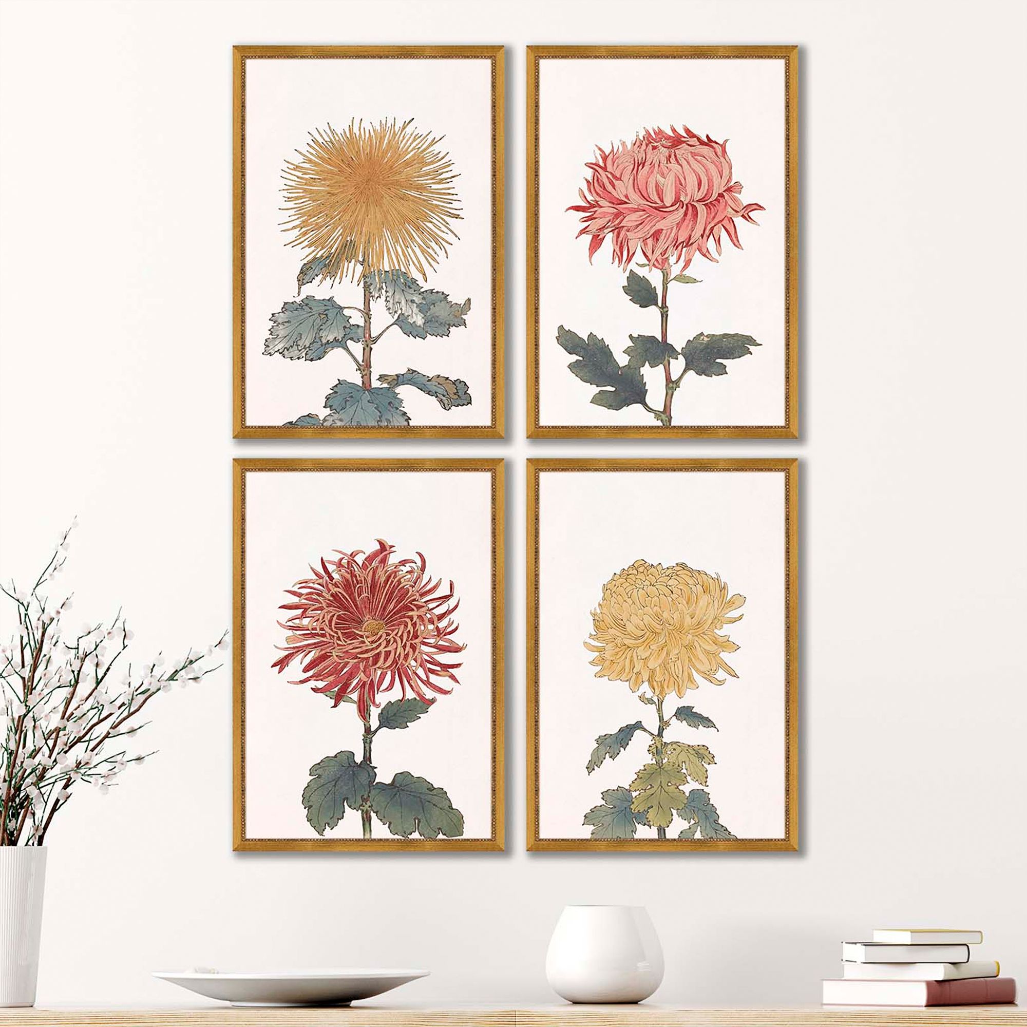 Chrysanthemum 25" High 4-Piece Giclee Framed Wall Art Set