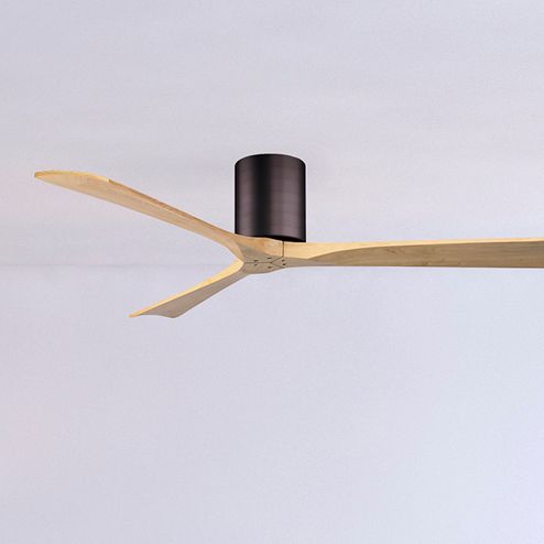 60" Irene-3H Brushed Bronze and Light Maple Hugger Ceiling Fan