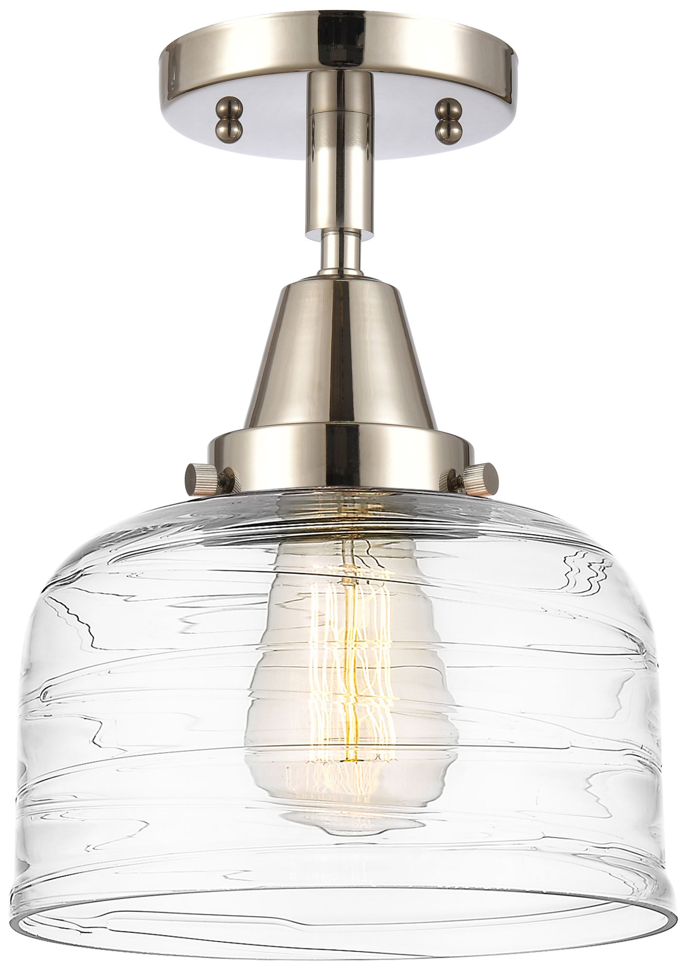 Caden Bell 8" Flush Mount - Polished Nickel - Clear Deco Swirl Shade
