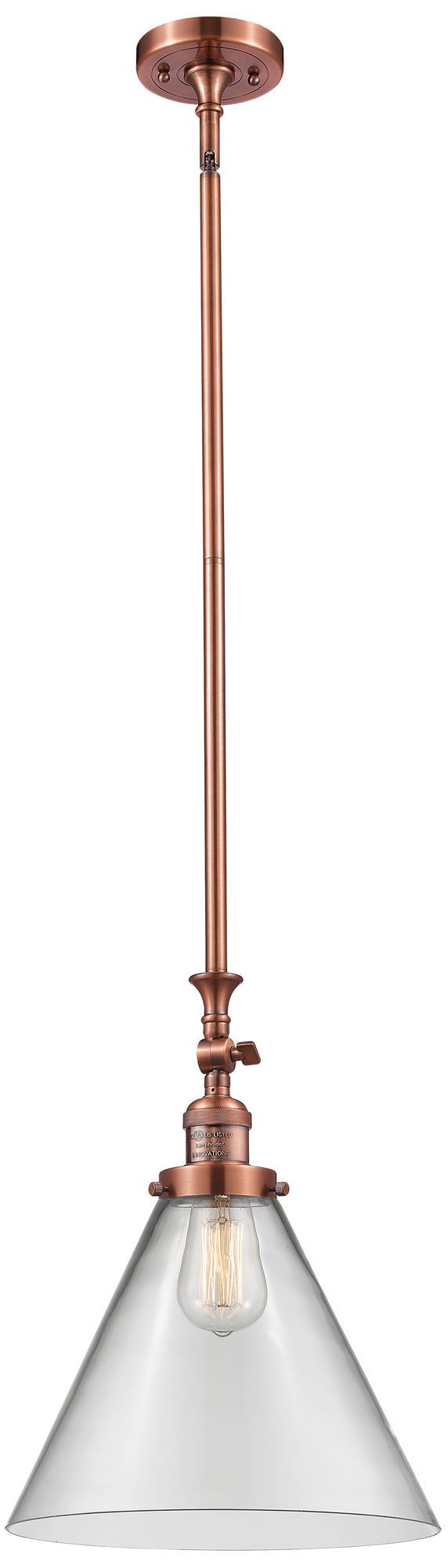 Cone 12" Wide Copper Stem Hung Tiltable Mini Pendant w/ Clear Shade