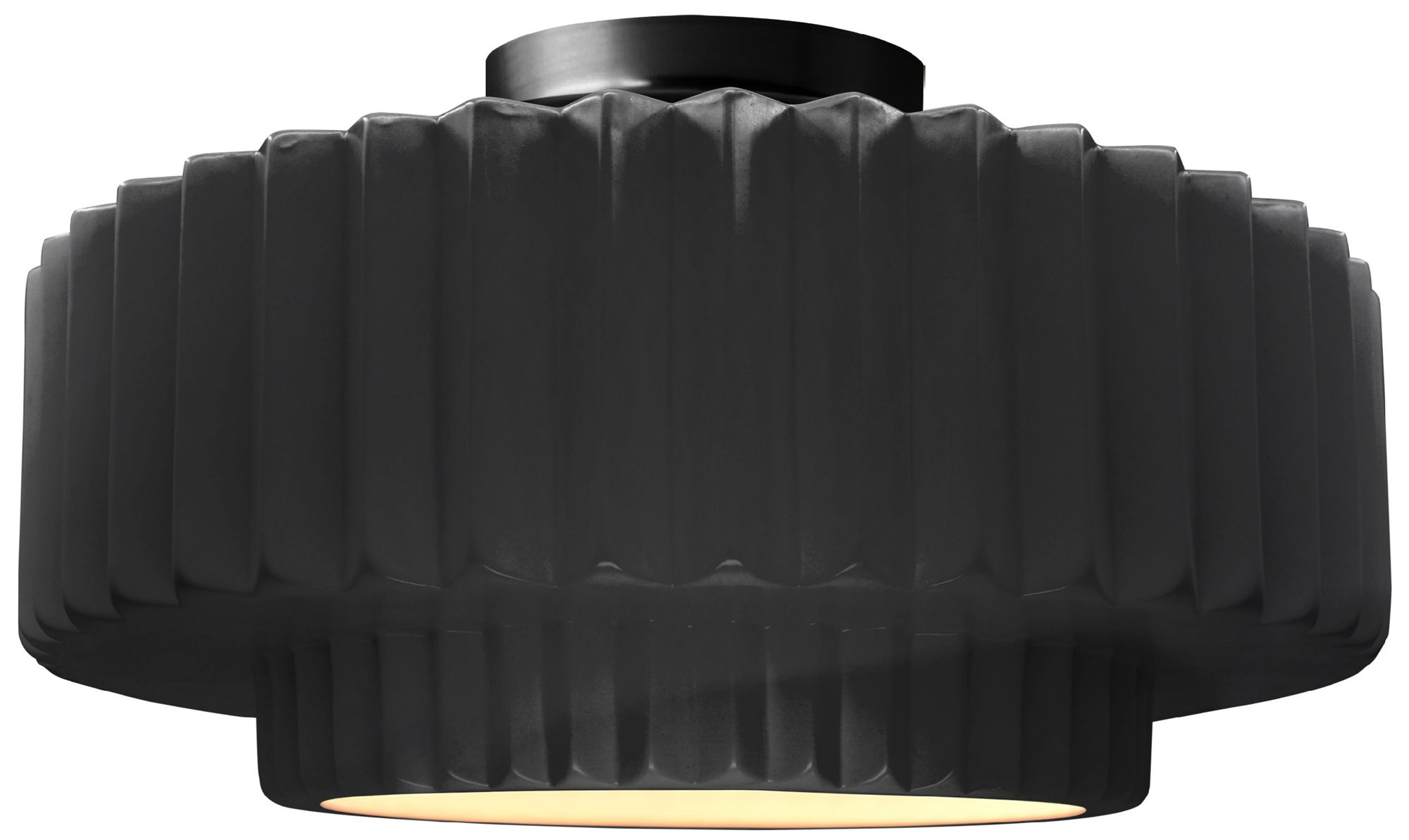 14.5"W Gloss Black/White Frame Matte Black Tier Pleated LED Semi.Flush