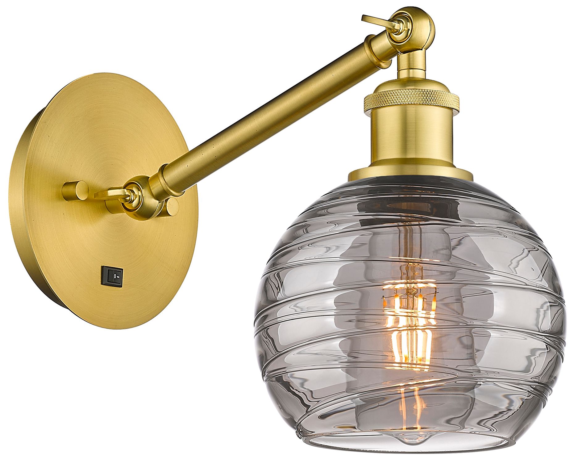 Ballston Athens 8.13"H Gold Adjustable Sconce w/ Smoke Swirl Shade
