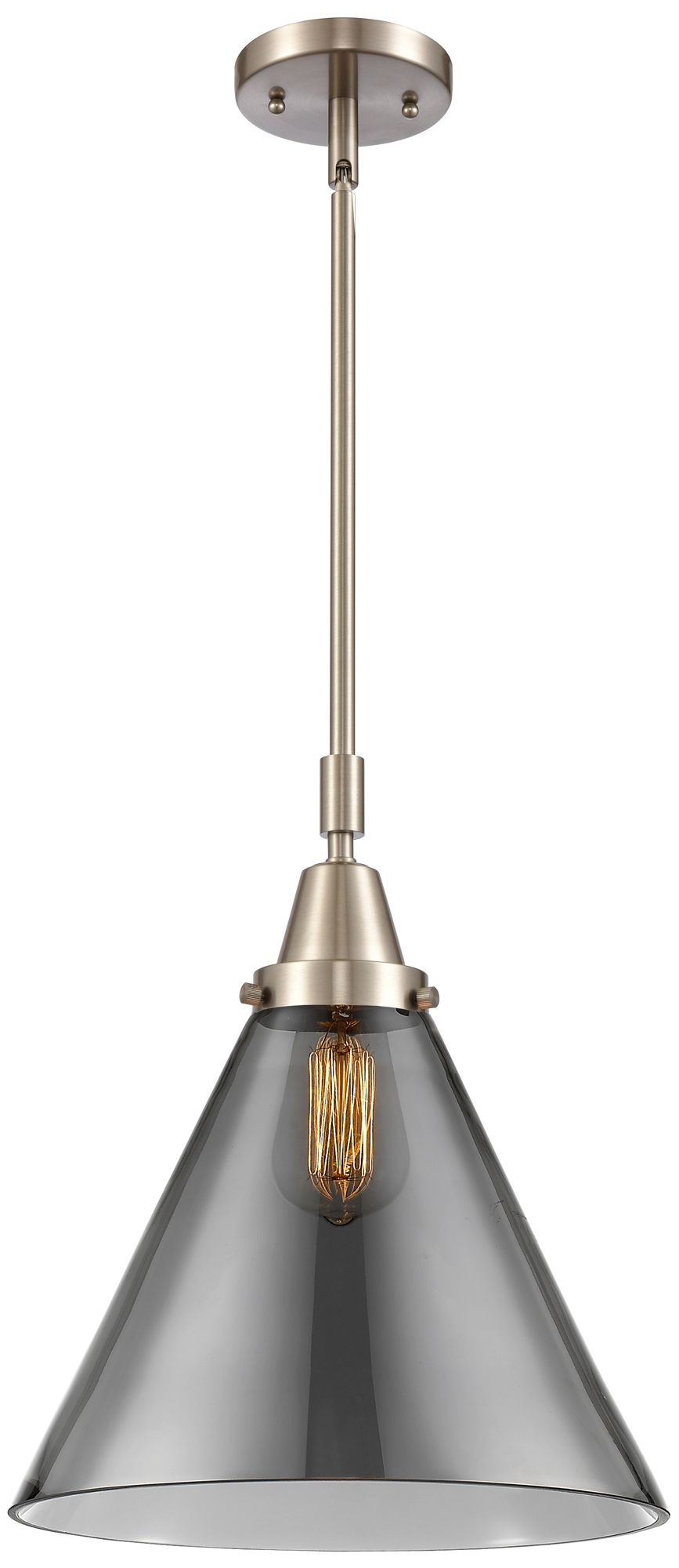 Caden Cone 12"W Brushed Nickel Stem Hung Mini Pendant w/ Smoke Shade