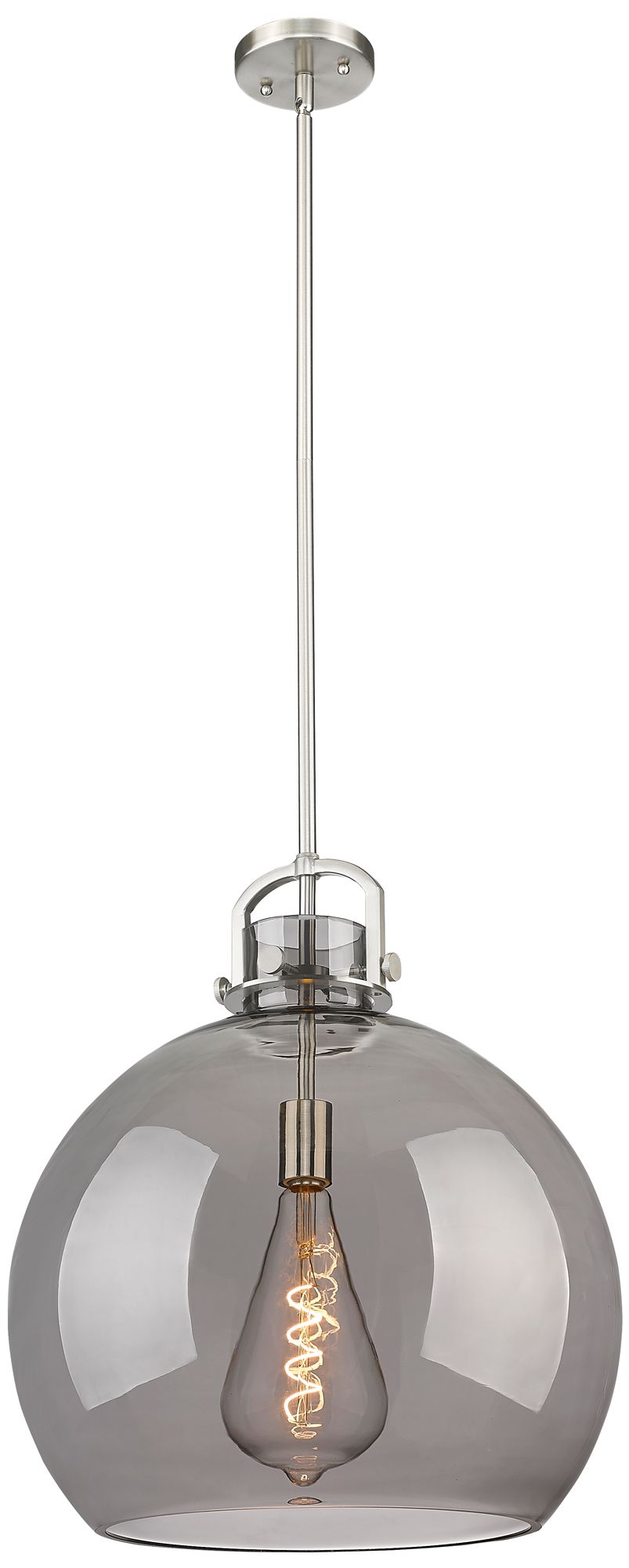 Newton Sphere 18" Wide Stem Hung Satin Nickel Pendant With Smoke Shade