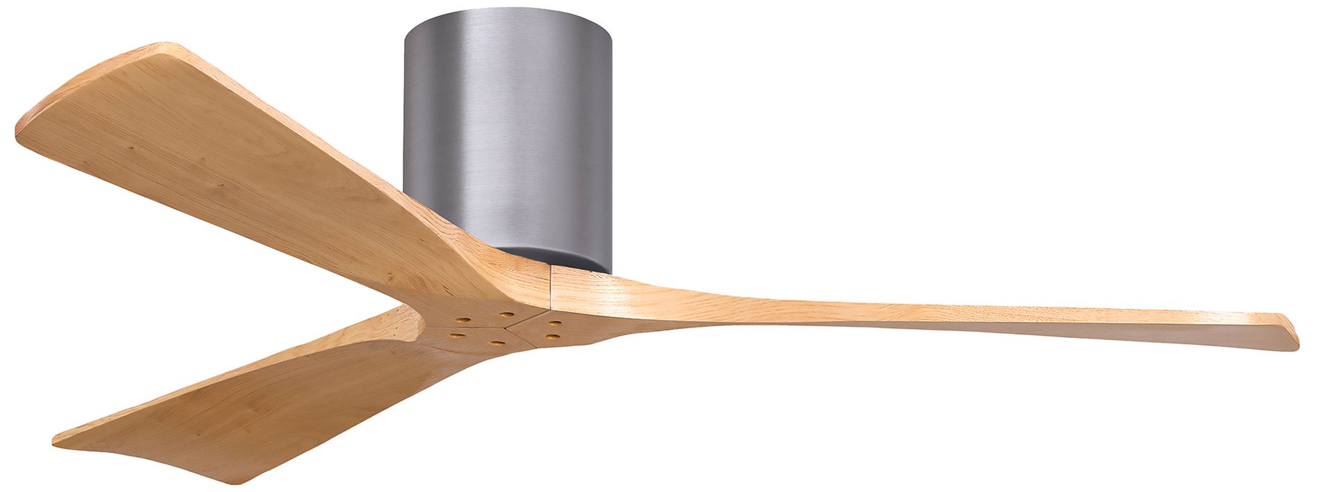52" Irene-3H Brushed Pewter and Light Maple Hugger Ceiling Fan