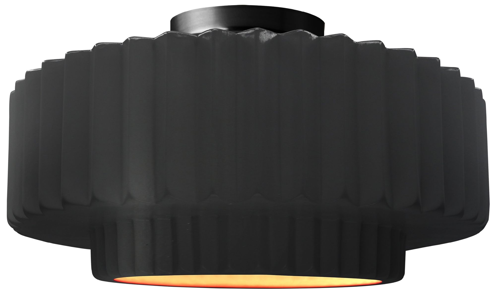 Radiance 14.5"W Carbon/Gold Frame Matte Black Tier Pleated LED Semi.Fl