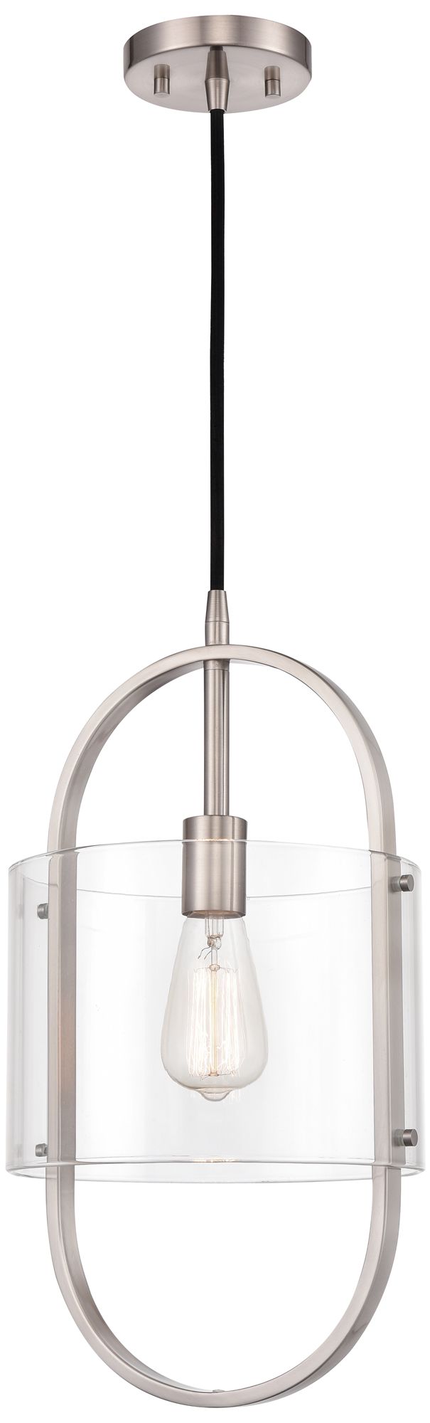 Pelham 9.5" Wide Brushed Satin Nickel Corded Mini Pendant w/ Clear Sha