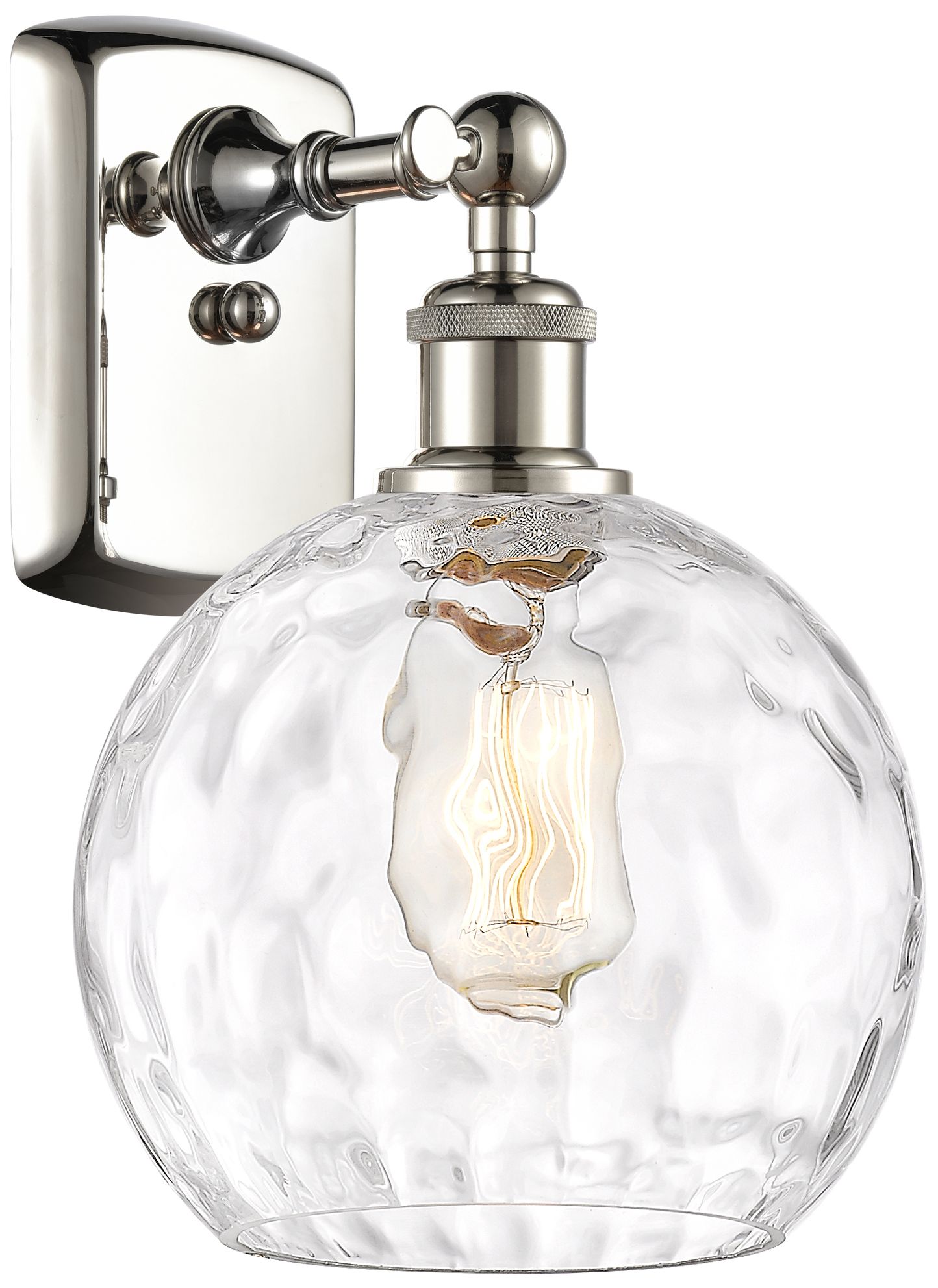 Athens Water Glass 8" Incandescent Sconce - Nickel Finish - Clear Shad