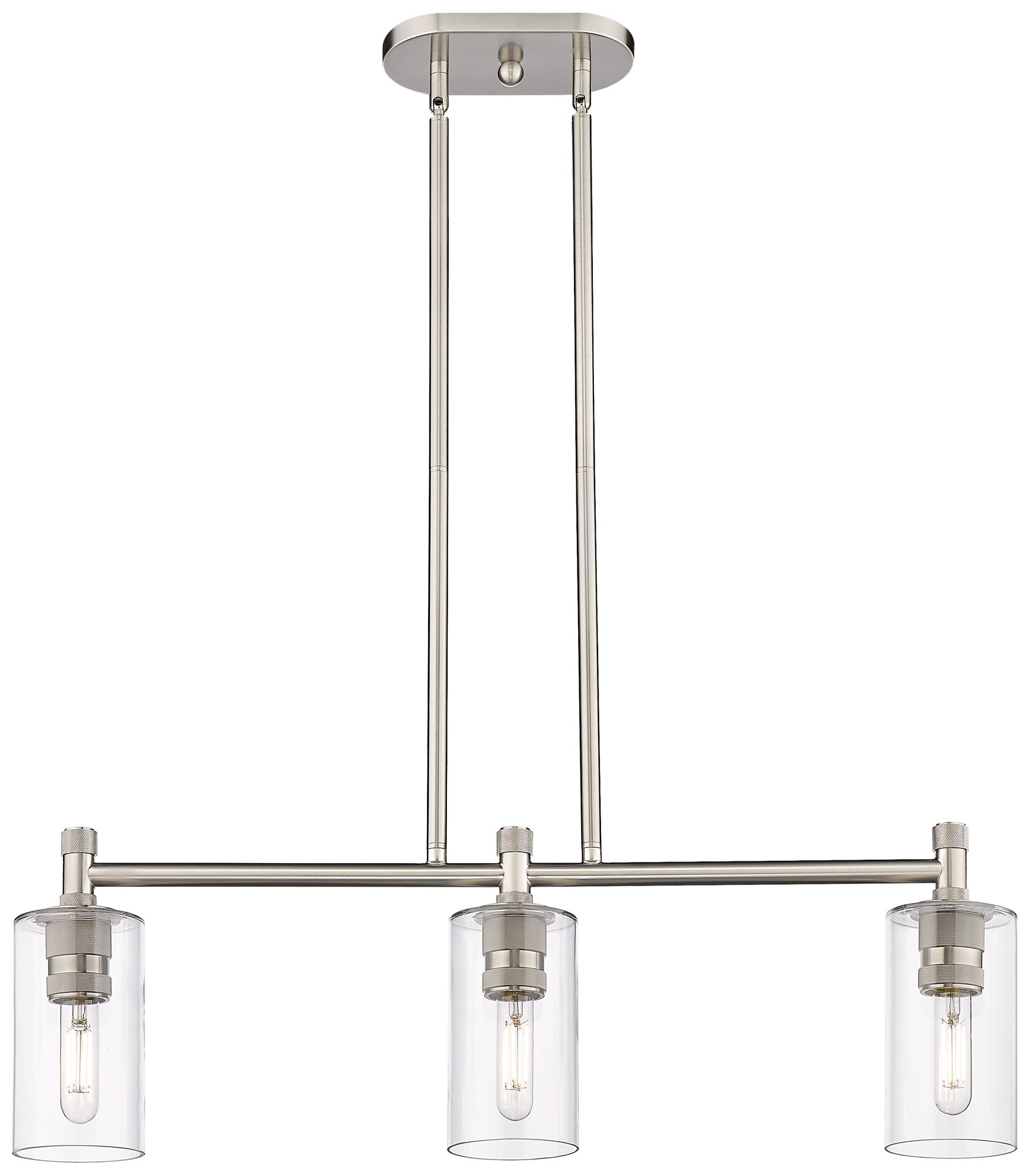 Crown Point 30.5"W 3 Light Satin Nickel Stem Island Light w/ Clear Sha
