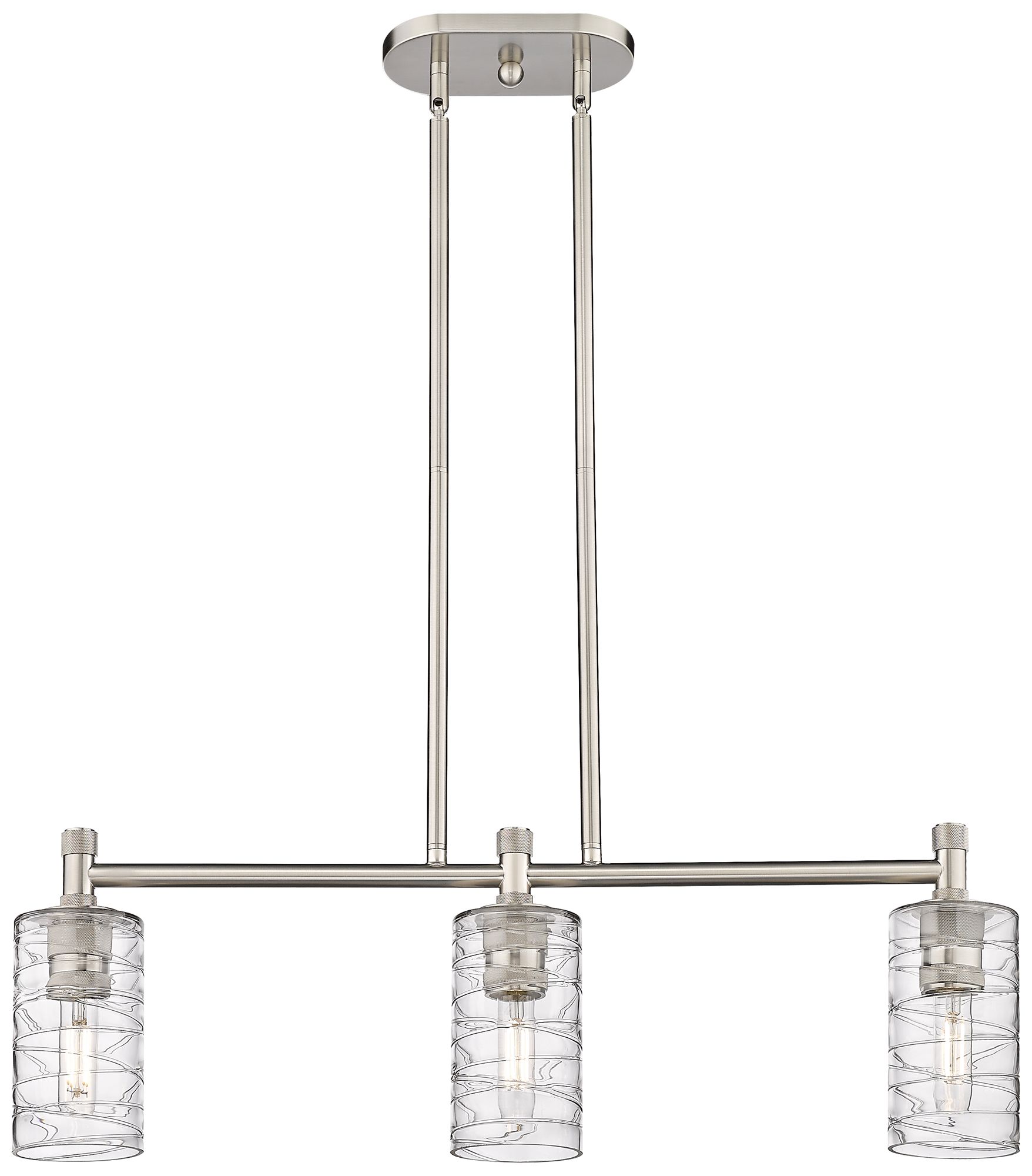 Crown Point 30.5"W 3 Light Satin Nickel Stem Island Light w/ Swirl Sha