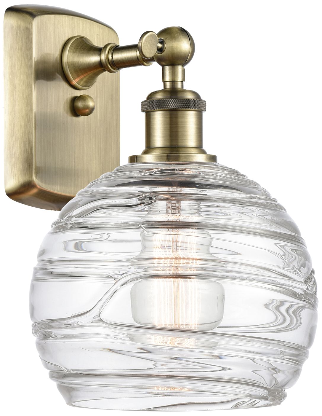 Athens 8" Antique Brass Sconce w/ Clear Deco Swirl Shade