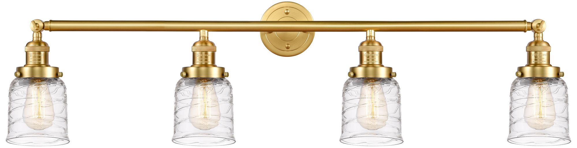 Bell 4 Light 42" LED Bath Light - Satin Gold - Deco Swirl Shade