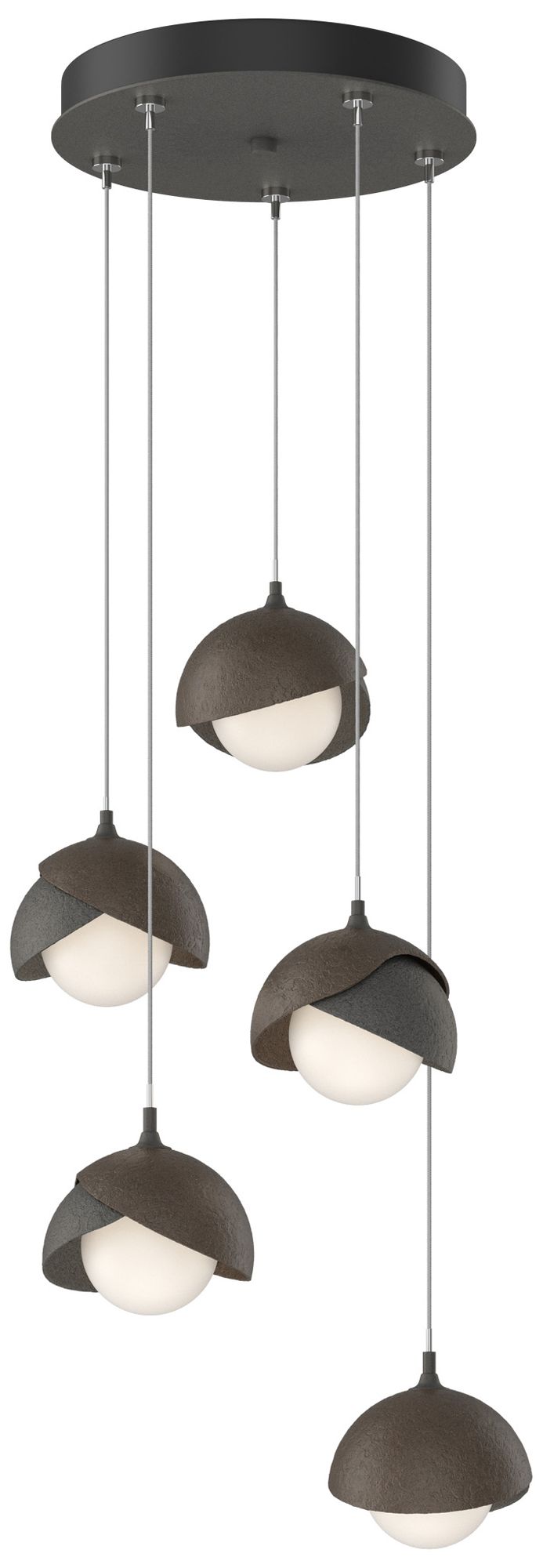 Brooklyn 16"W 5-Light Bronze Accented Iron Long Double Shade Pendant