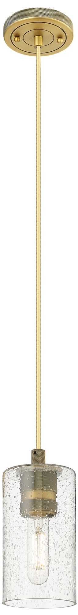 Crown Point 3.88" Wide Brushed Brass Cord Hung Pendant With Seedy Shad
