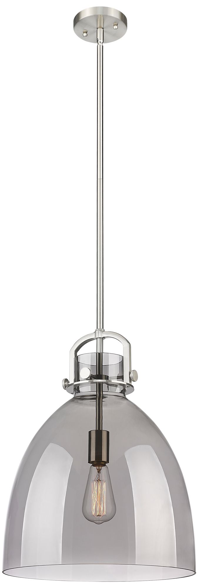 Newton Bell 14" Wide Stem Hung Satin Nickel Pendant With Smoke Shade