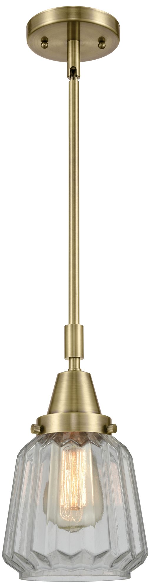 Caden Chatham 7" Wide Antique Brass Stem Hung Mini Pendant w/ Clear Sh