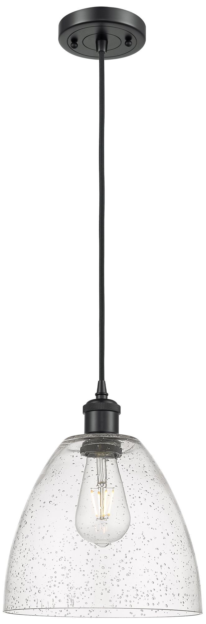 Ballston Bristol Glass 9" Mini Pendant - Matte Black - Seedy Shade