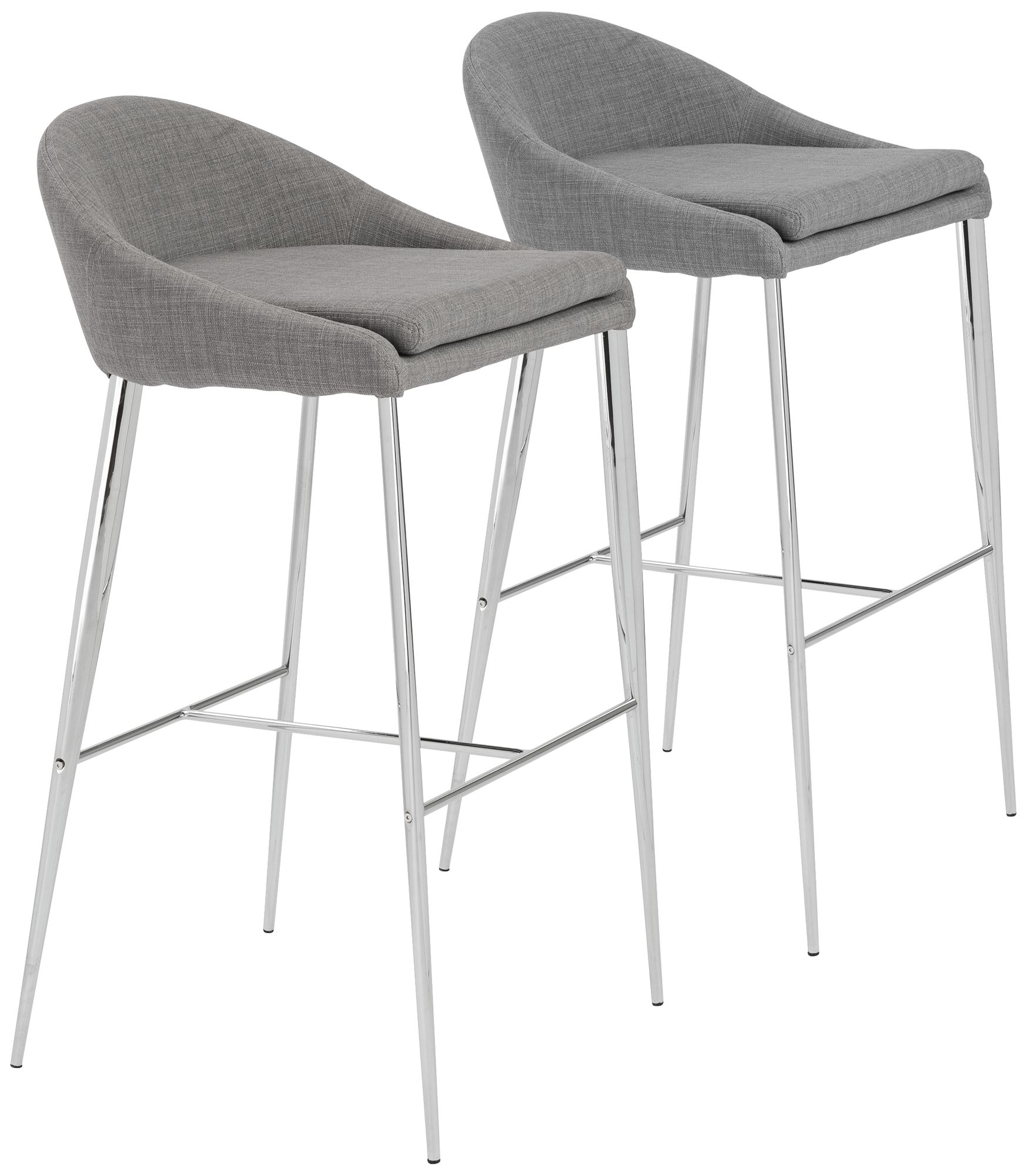 Brielle 30" Chrome and Gray Fabric Barstool Set of 2