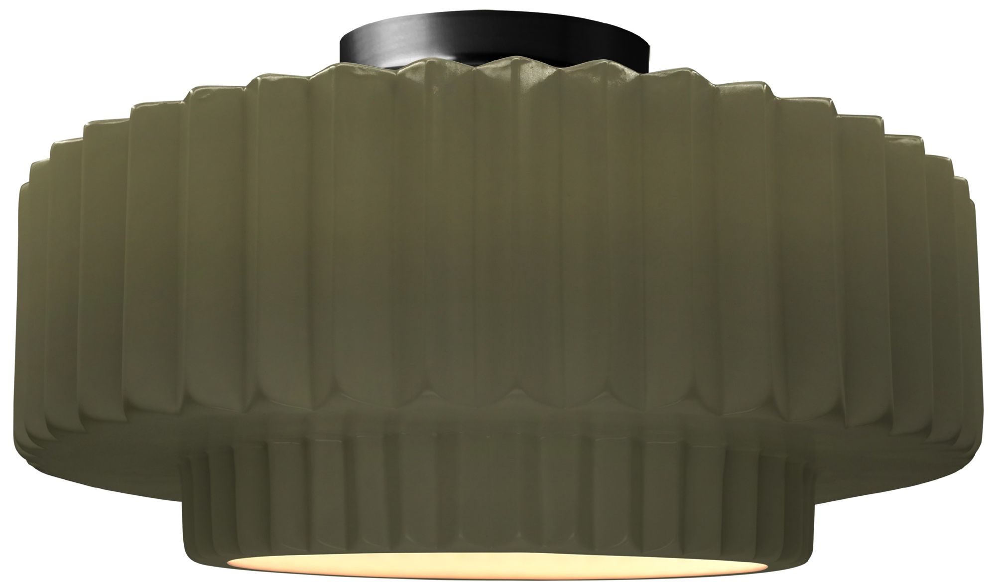 Radiance 14.5"W Matte Green Frame Matte Black Tier Pleated Semi.Flush