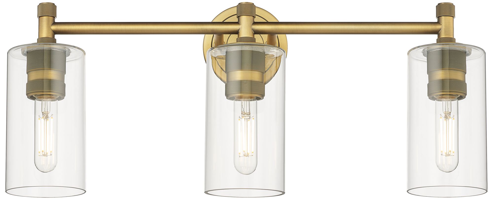 Crown Point 24" Wide 3 Light Brushed Brass Bath Light With Clear Shade