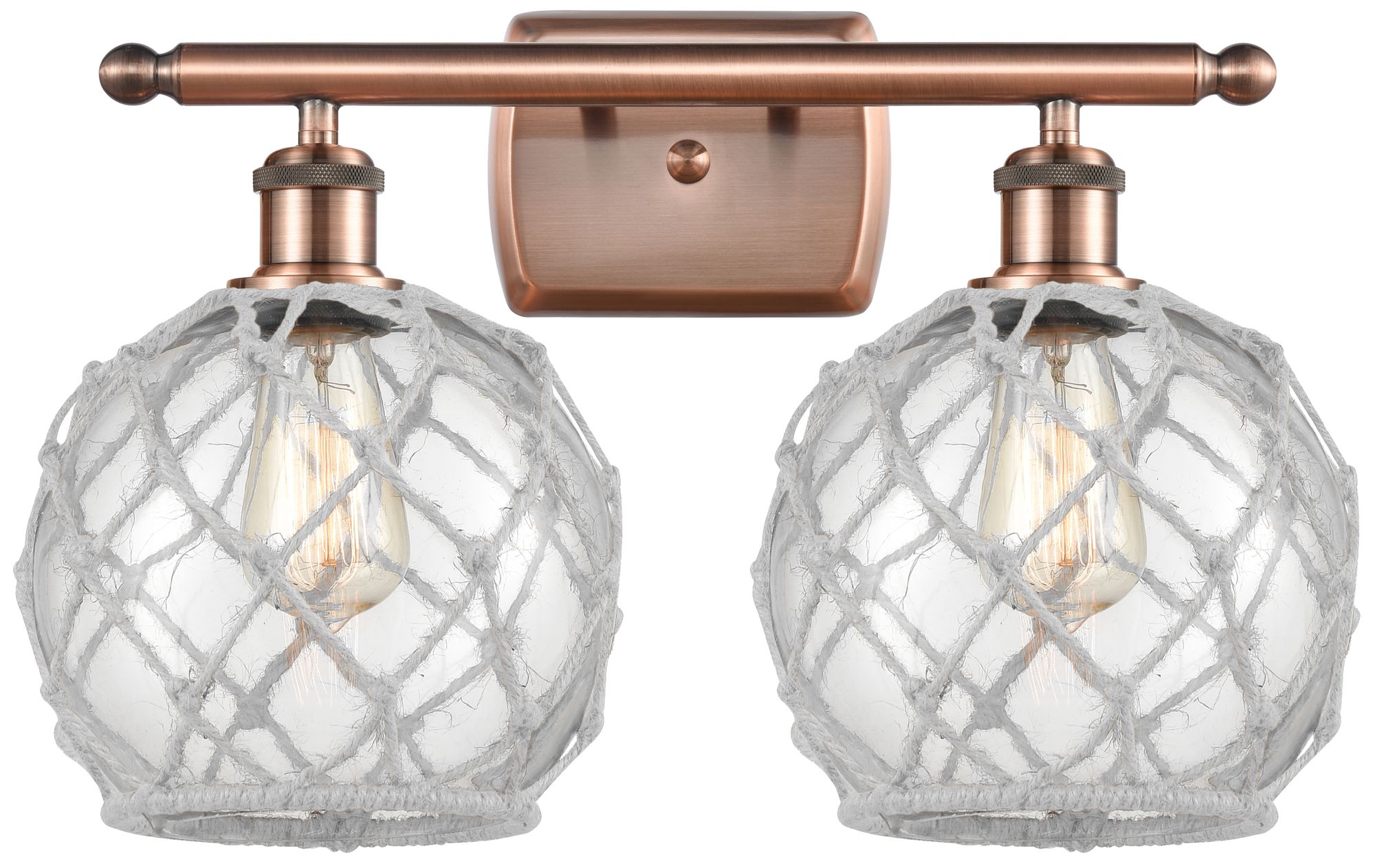 Farmhouse Rope 16"W 2 Light Copper Bath Light w/ Clear and White Rope