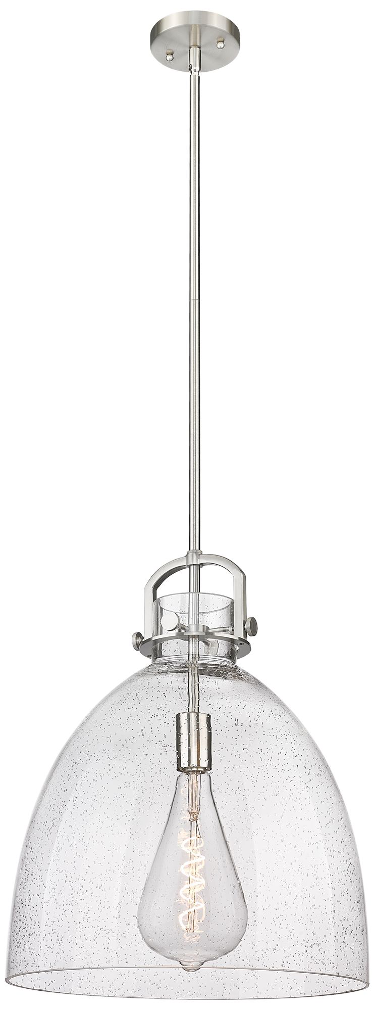 Newton Bell 16" Wide Stem Hung Satin Nickel Pendant With Seedy Shade