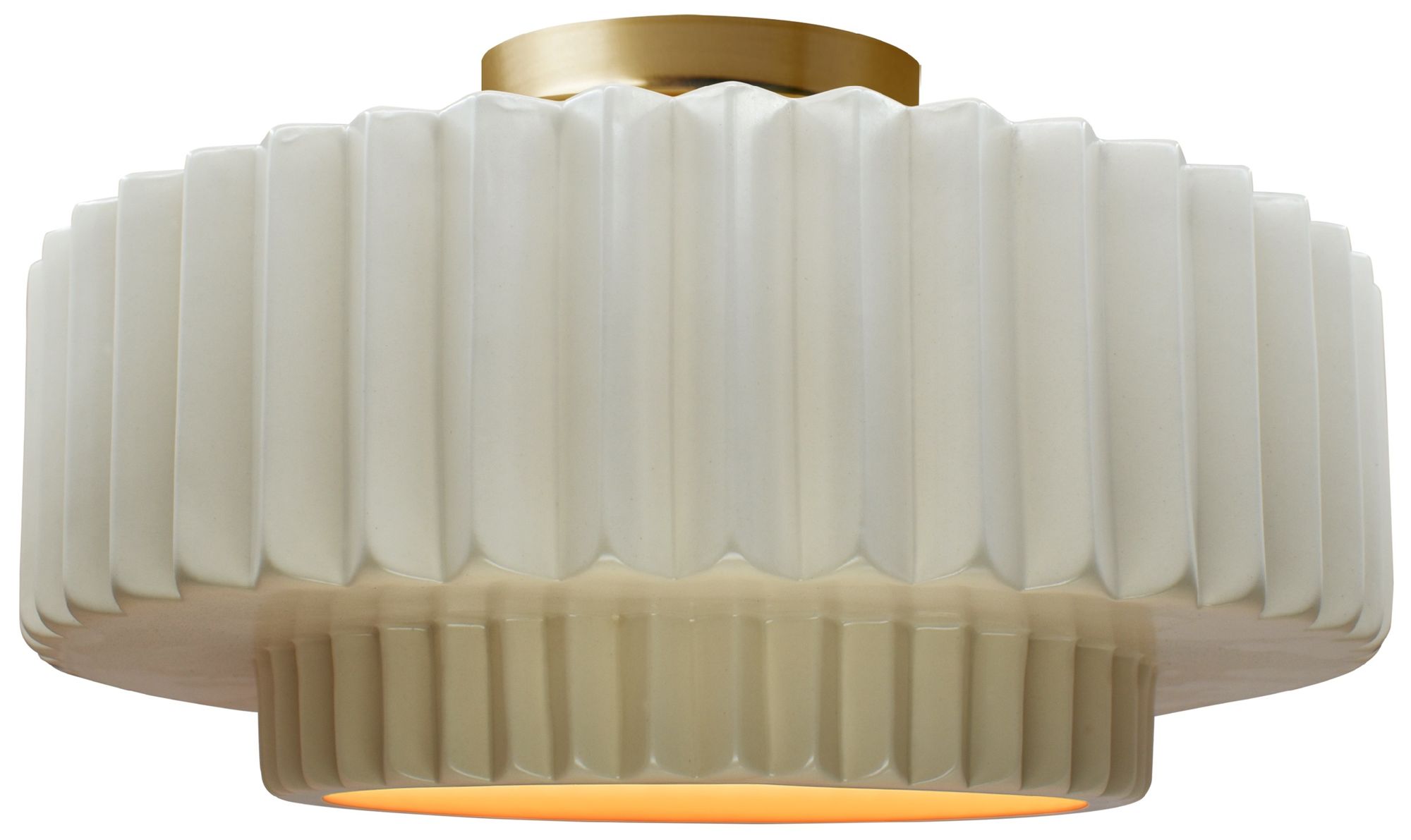 14.5"W Matte White/Gold Frame Brushed Brass Tier Pleated LED Semi.Flus