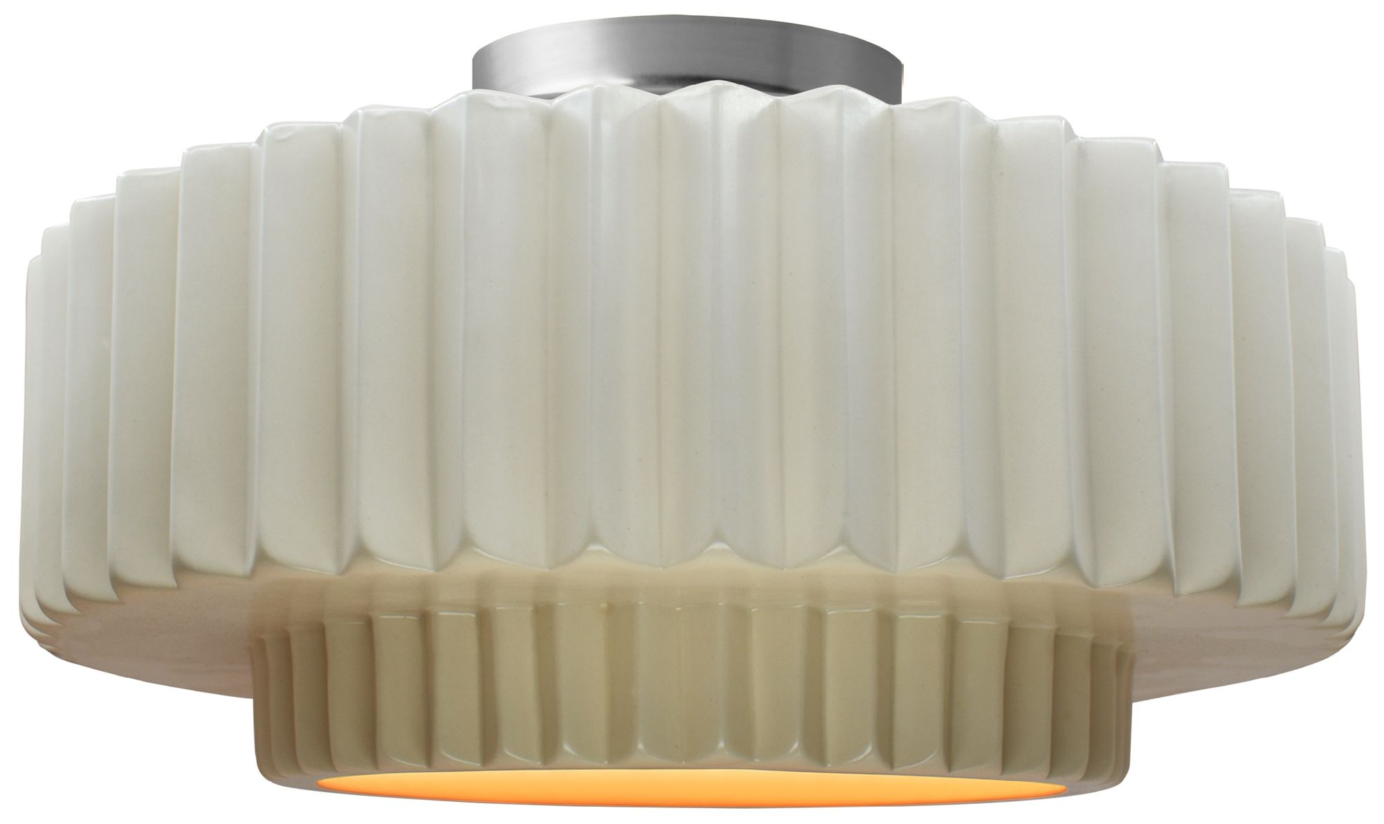 Radiance 14.5"W Matte White/Gold Frame Nickel Tier Pleated Semi.Flush