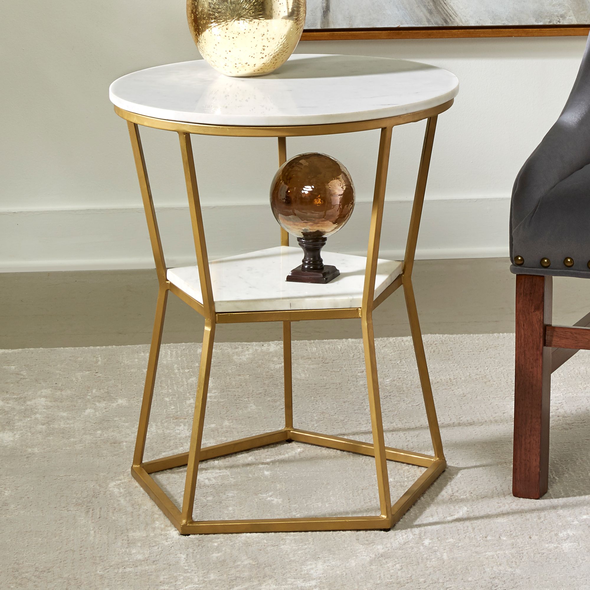 Marigold 20 1/4" Wide Gold and White Marble Accent Table
