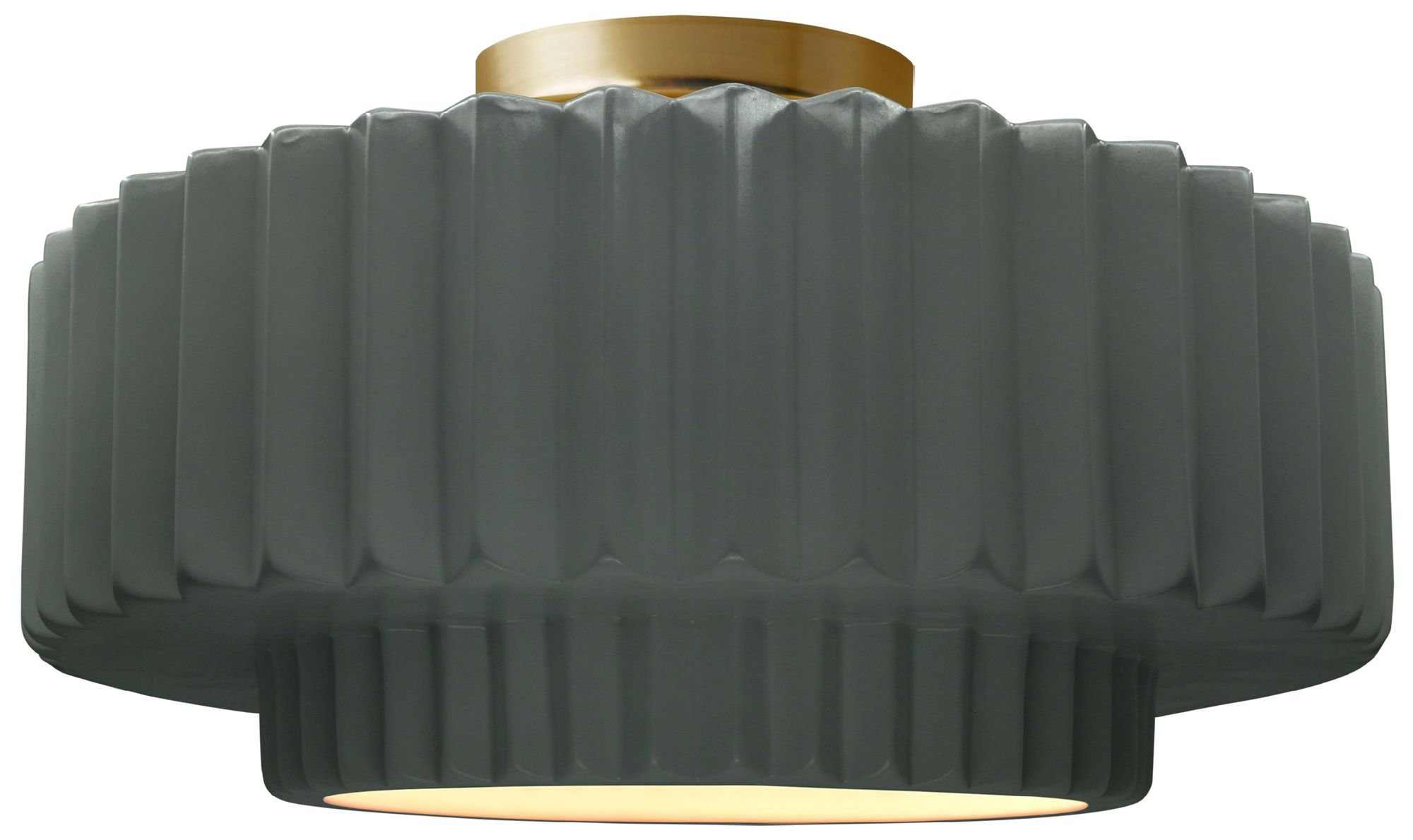 Radiance 14.5"W Pewter Green Frame Brushed Brass Tier Pleated Semi.Flu