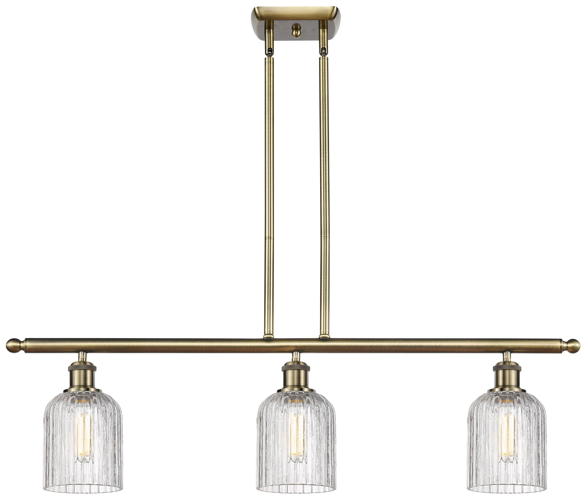 Bridal Veil 36"W 3-Light Antique Brass Stem Island Light w/ Clear Shad