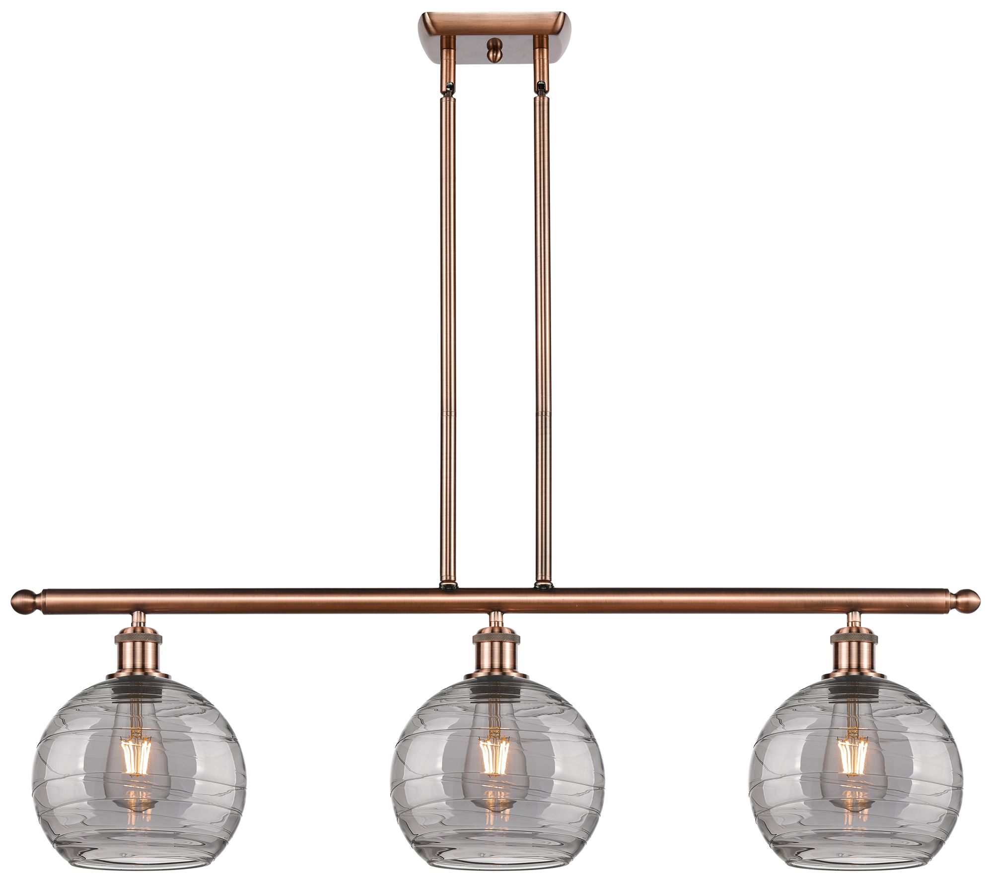 Athens 36"W 3-Light Copper Stem Island Light w/ 8" Smoke Swirl Sh